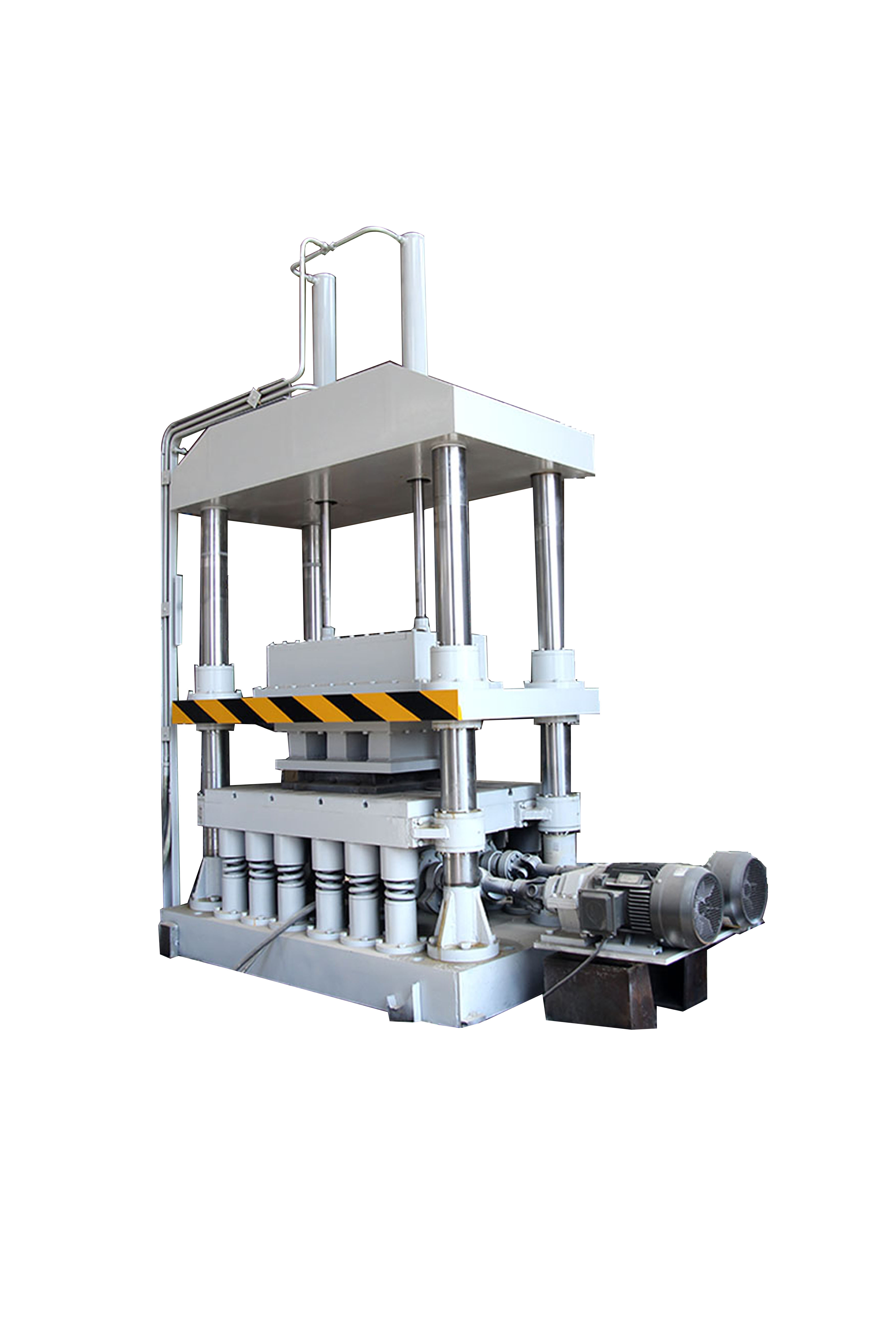 液壓激振合力成型機,是在振動成型原理的基礎(chǔ)上,吸收了振動成型機、油壓機、摩擦壓力機等各種同類機械的優(yōu)點,結(jié)合我廠新專利產(chǎn)品調(diào)頻調(diào)幅型壓機經(jīng)過改進創(chuàng)新設(shè)計而成的。是一種集慣性振動、電液控制加壓、半干法壓制成型的先進設(shè)備。壓制面積較大薄件制品和厚件制品是本系列機型的特長。
